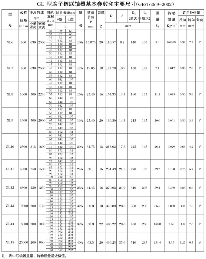 瑞安市寶德隆機械配件有限公司提供GL型滾子鏈聯軸器具有拆裝方便,快速安裝等特點,廣泛用于連接/固定輪轂孔和零件的軸,例如齒輪,錐齒輪,鏈輪,葉輪,凸輪,皮帶輪和飛輪等軸的聯結固定,咨詢電話:18906872378