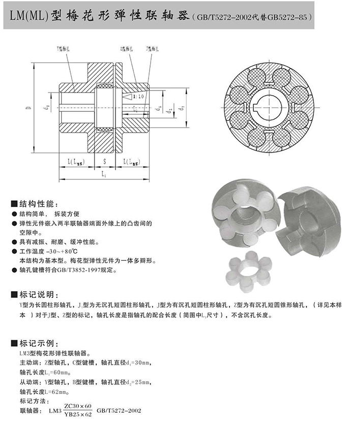 瑞安市寶德隆機(jī)械配件有限公司提供LM(ML)型梅花形彈性聯(lián)軸器具有拆裝方便,快速安裝等特點(diǎn),廣泛用于連接/固定輪轂孔和零件的軸,例如齒輪,錐齒輪,鏈輪,葉輪,凸輪,皮帶輪和飛輪等軸的聯(lián)結(jié)固定,咨詢電話:18906872378