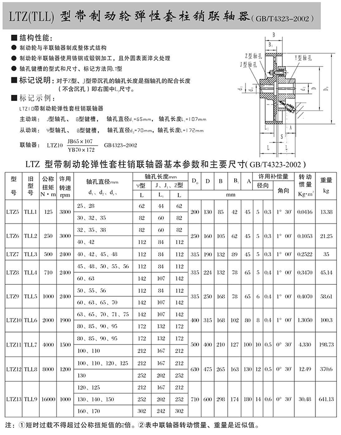 瑞安市寶德隆機械配件有限公司提供LTZ(TLL)型帶制動輪彈性套柱銷聯(lián)軸器具有拆裝方便,快速安裝等特點,廣泛用于連接/固定輪轂孔和零件的軸,例如齒輪,錐齒輪,鏈輪,葉輪,凸輪,皮帶輪和飛輪等軸的聯(lián)結固定,咨詢電話:18906872378